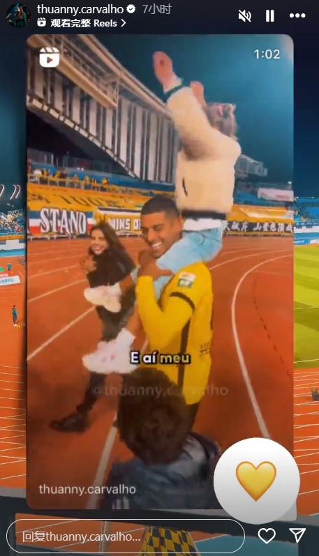 4月3日讯 阿兰妻子Thuanny Carvalho更新社媒,晒出自己观战青岛德比的视频。