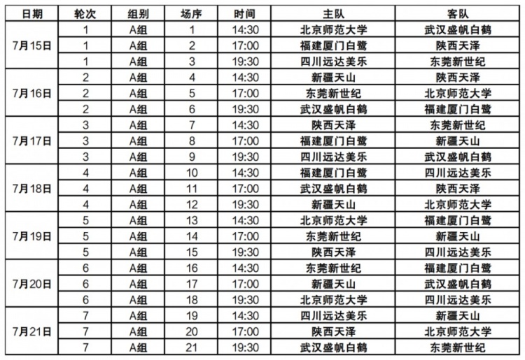 7月19日 14:30北京师范大学 vs 福建厦门白鹭