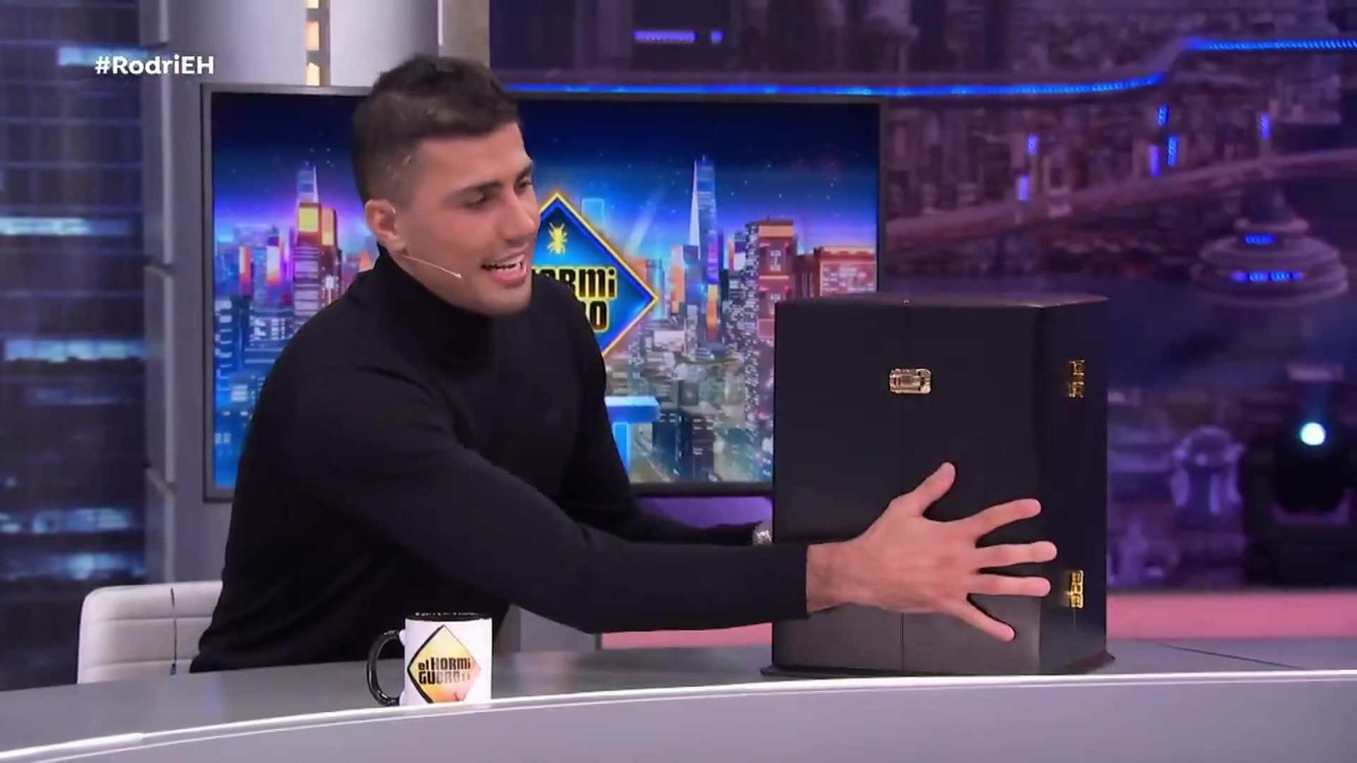 沉甸甸的大宝贝罗德里携金球上节目,现场开箱颁给主持人