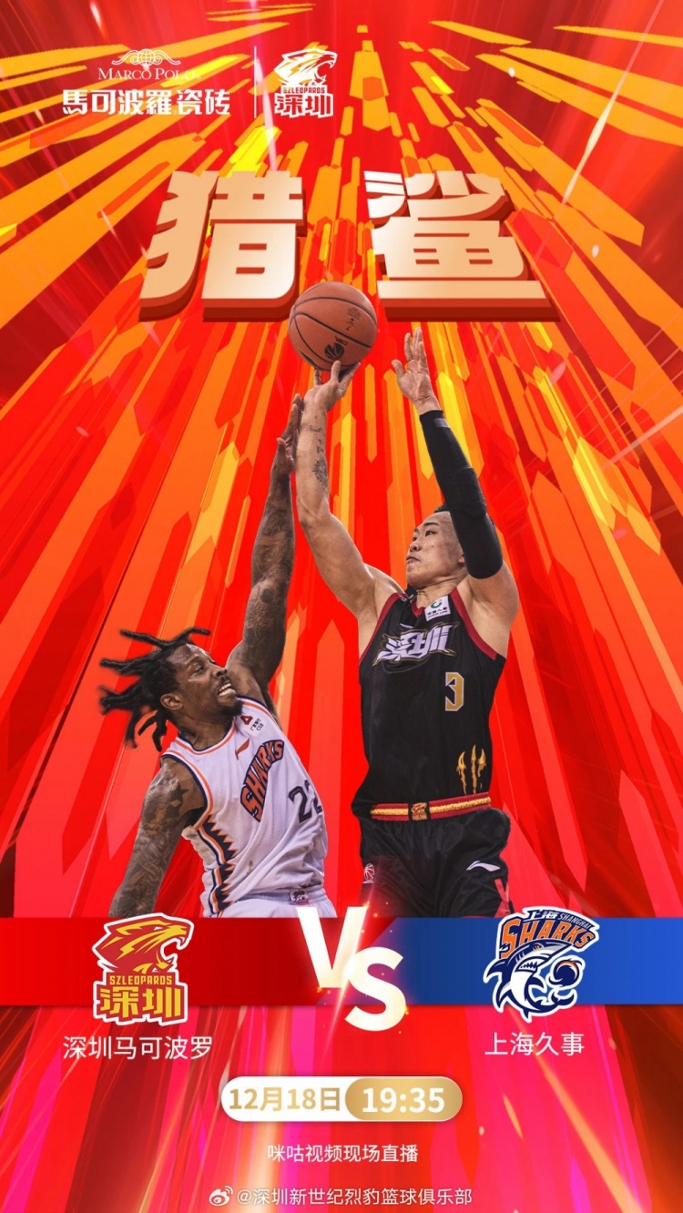 12月18日19:35,深圳马可波罗男篮主场严阵以待迎战劲敌上海久事男篮。