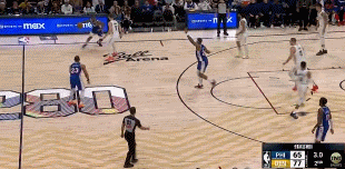 1月22日讯 NBA常规赛,76人上半场以67-77落后掘金。