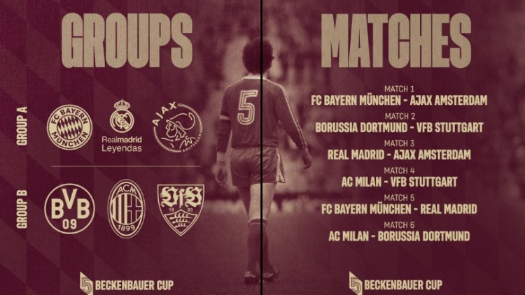 贝肯鲍尔杯分组赛程:A组拜仁皇马阿贾克斯,B组米兰多特斯图加特