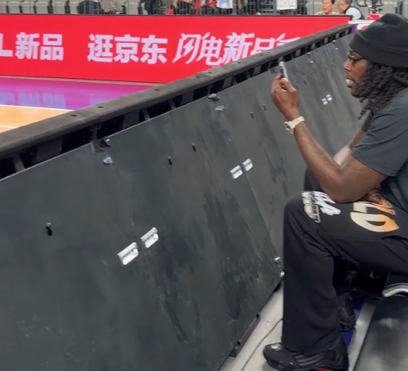 哦呦你来了!新疆新外援哈雷尔场边观战新疆主场vs深圳的比赛