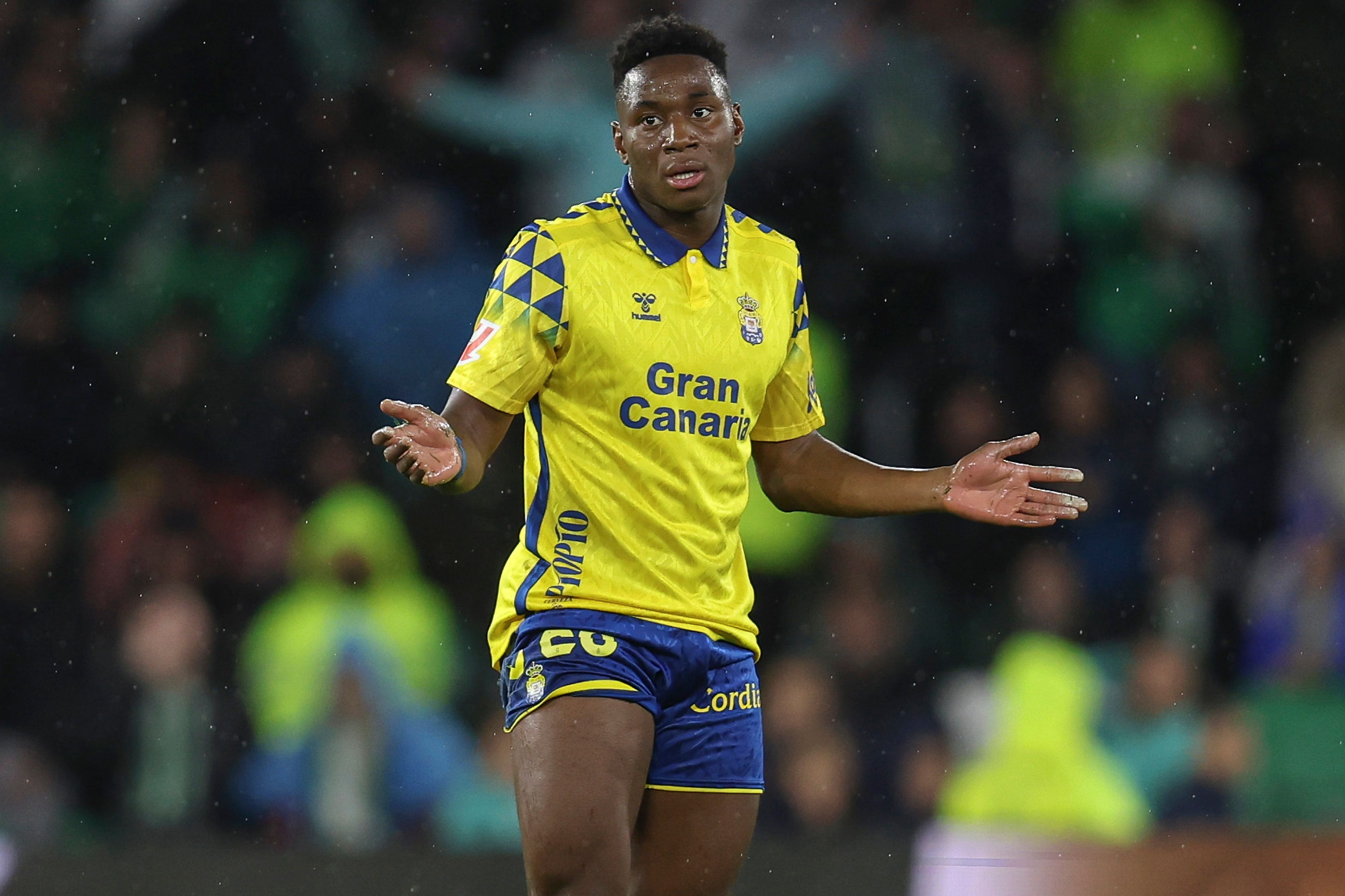 20岁的埃苏戈司职后腰,本赛季被葡体外租到拉斯帕尔马斯,17场打进1球。