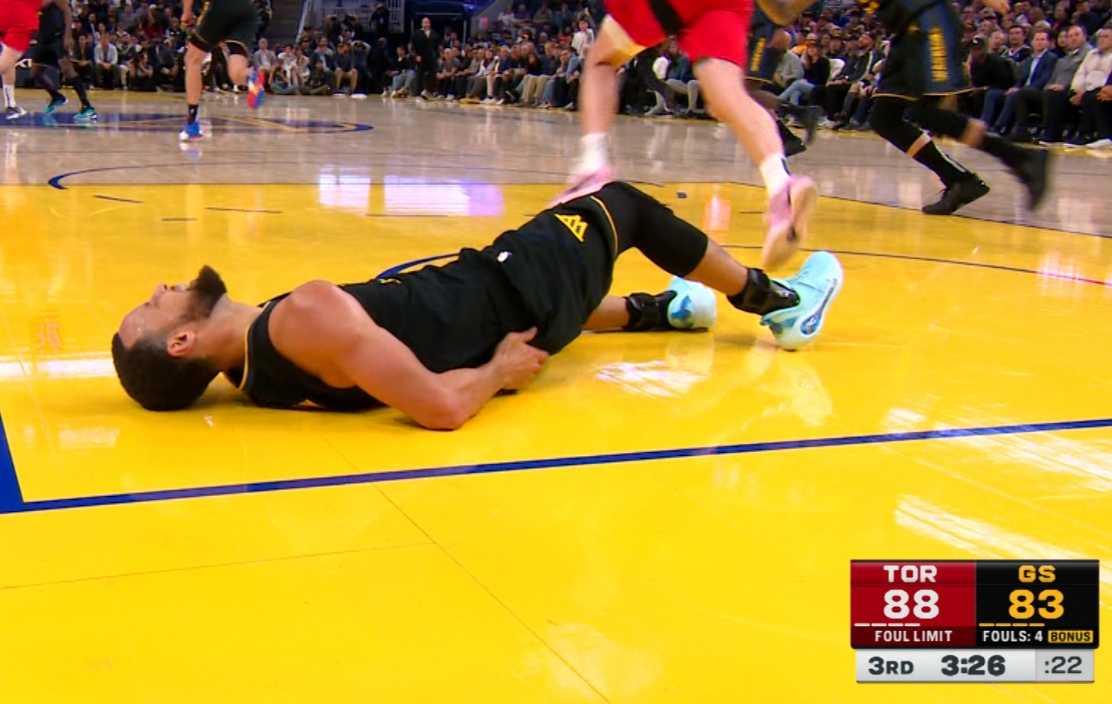 库里背部着地摔倒退赛!猛龙主帅拉贾主动喊暂停