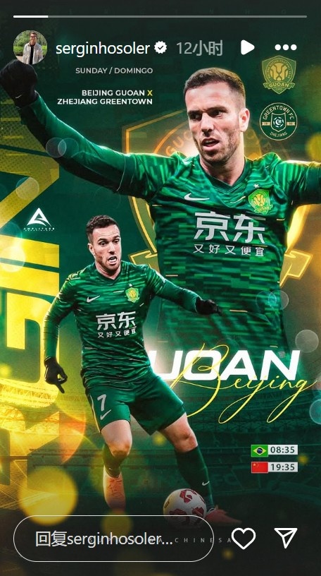 4月6日讯 塞尔吉尼奥更新社媒,预热国安vs浙江队。