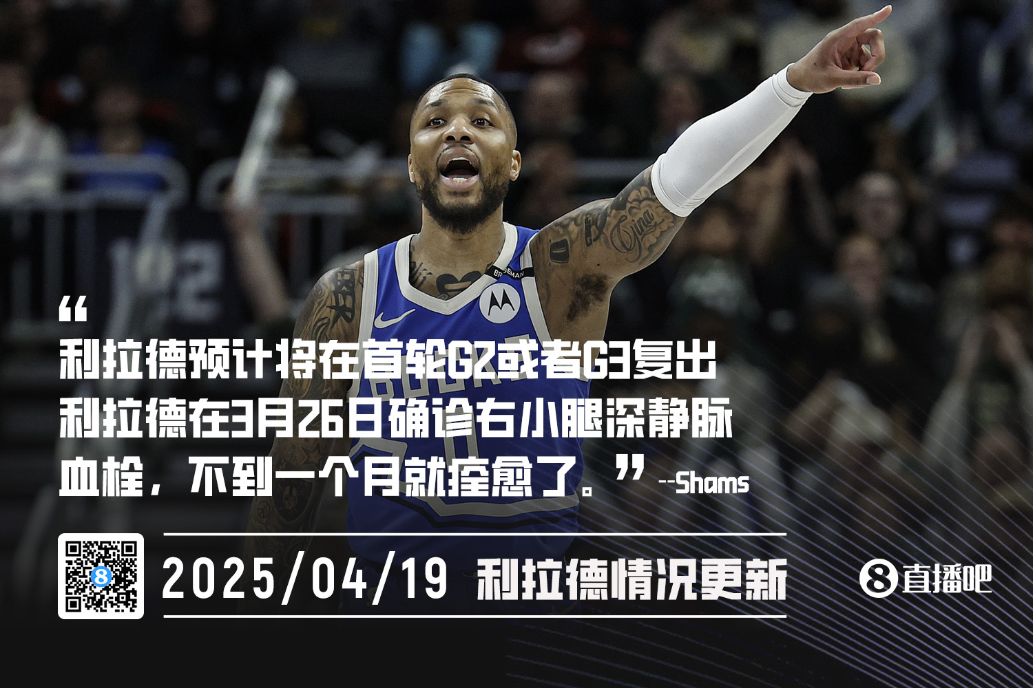 深静脉血栓不到一个月痊愈Shams:利拉德预计首轮G2或G3复出