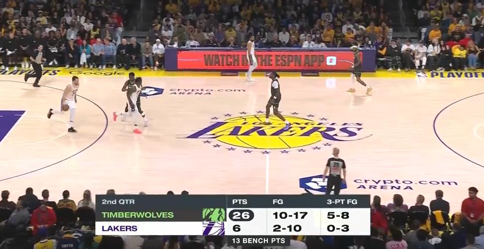 森林狼轰出一波266!湖人无奈喊下第4个暂停!