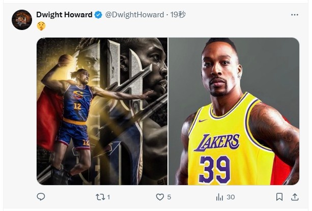 赛后,旧将霍华德更新社媒,发布了自己的超人P图和湖人球衣照片。