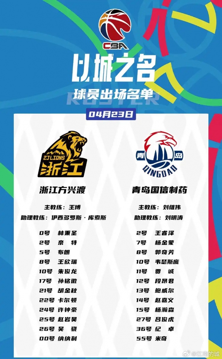 4月23日讯 今晚19点35,广厦和青岛的抢五大战将正式开打,双方大名单如下: