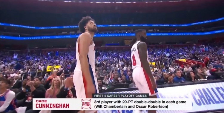 新星闪耀!康宁汉姆生涯前4场季后赛皆砍下20+两双!历史第3位!