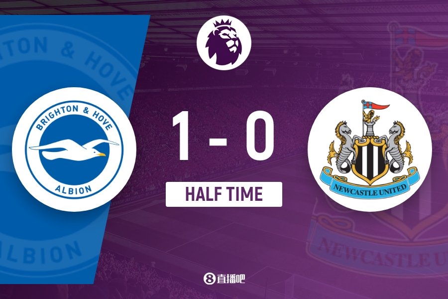 上半场比赛结束,布莱顿1-0纽卡斯尔联。