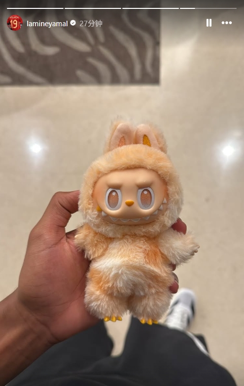 07月09日讯 目前正在中国参加商业活动的亚马尔更新了社媒,晒出了最近很火的labubu。