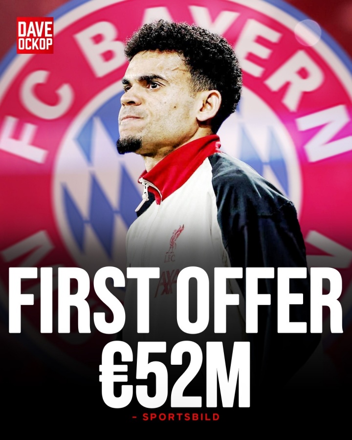 图片报表示,拜仁已经向利物浦发出第一份正式报价——5200万欧,以引进利物浦边锋路易斯-迪亚斯。