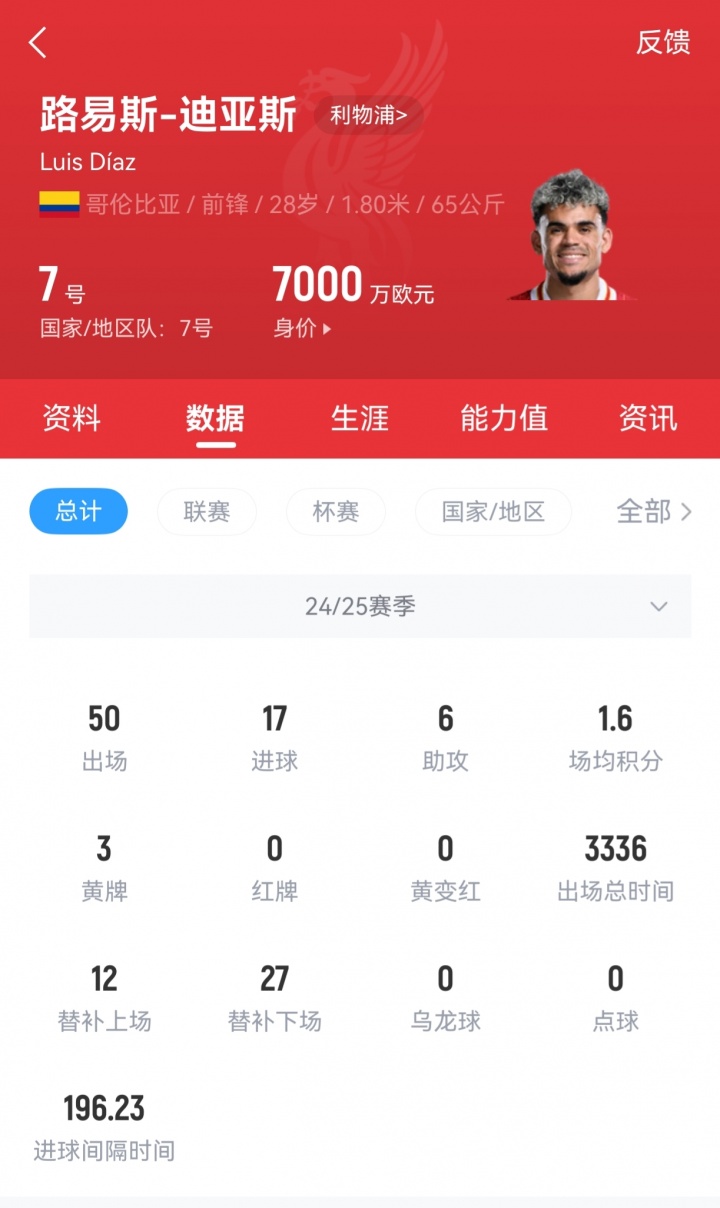 目前迪亚斯在利物浦还有两年合同,他的周薪约为14万镑。