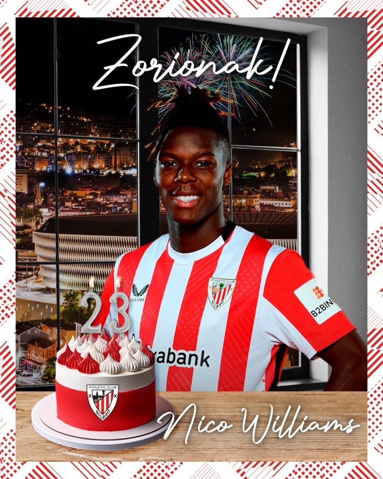 7月12日讯 今天是尼科-威廉姆斯的23岁生日,毕尔巴鄂竞技官方为他送上祝福。
