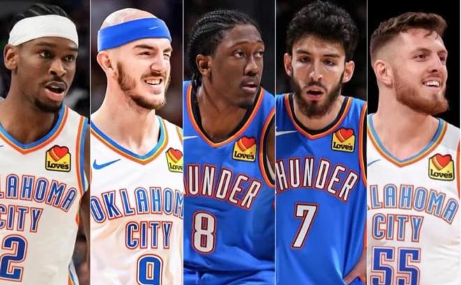 点评:随着约基奇的成长,掘金队过去9个赛季进攻效率都能排在联盟前7,上个赛季每100次进攻得分比联盟平均水平高5.2分,是他们在这段时间里最好的进攻赛季。但这也是他们过去七年中防守最差的一个赛季(比联盟平均丢分水平高出1.4分)。谁都知道这支球队的问题出在哪,休赛期管理层一针见血的处理问题,过去四个赛季当约老师下场时,掘金场均要的多丢9.2分,瓦兰来了这一问题将得到极大缓解!平心而论,哪怕阵容漏洞百出,自23年夺冠以来的两个赛季中,掘金都是最终总冠军最难对付的对手,而今约基奇替补有了,阵容深度有了,排名第二是低不高!第1名:雷霆(上期第1)