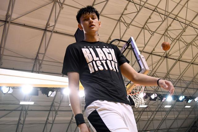 二、“纯粹热爱篮球本身”他一直以来都在做自己,他一直以来冲闯的也不是寻常路。曾凡博的父母都是专业篮球运动员,尤其父亲曾庆秋当年还是黑龙江省篮球队的球员,可惜受困伤病过早地从省队退役。受父亲影响,曾凡博自幼与篮球结缘,而父亲也成为了他的篮球启蒙教练。在曾庆秋的亲身指导下,崭露天赋的曾凡博逐渐从同龄球员中脱颖而出,但在当地久负盛名的篮球名校哈尔滨五中,身形削瘦的曾凡博还是无缘获得校队教练的青睐。那时的他年仅十二岁,遭受校队冷遇令他顿感受挫,可随后倏然造访的北京首钢青年队教练安宏乐改变了他的人生。当时安宏乐教练的大学队友在黑龙江从事基层篮球培训工作,他向安宏乐推荐了自己在哈尔滨五中发现的曾凡博,于是安宏乐特意赶赴哈尔滨对其进行深入考察。可当安宏乐联系上曾庆秋时,将信将疑的曾庆秋并没有同意安宏乐想将曾凡博带回北京的请求。曾庆秋在事后回忆,他当时并不相信会有北京的篮球俱乐部不远千里来到哈尔滨遴选人才,但在安宏乐的反复劝说下,他最后还是将曾凡博送往北京参加试训,而曾凡博在通过骨龄测试等项目后也顺利入选北京首钢青年队。曾凡博对突如其来的职业规划满怀憧憬,他在安宏乐教练麾下埋头苦练,并在两年后成为北京首钢俱乐部推出的雏鹰计划的首期球员,被球队送往美国佛罗里达州的温德米尔高中接受语言预科学习与专业篮球训练。赴美求学是一条与传统青训迥然不同的道路,十四岁的曾凡博所面临的除了篮球理念与训练强度的猛烈冲击,还有语言障碍与饮食差异等生活难题。但曾凡博并未打退堂鼓,时值温德米尔高中校队轮换阵容更迭,初来乍到的他把握机会跃升为球队核心,“曾凡博在攻防两端的表现都非常全面,身高臂长,能突擅防。”球队主教练布莱恩-霍夫夸道,“他打球不是为了吸引媒体或球迷的关注,他纯粹地热爱篮球本身,我所能做的也就是勉励他继续做自己。”凭借高中时期攻防全能的惊艳表现,曾凡博获评为全美四星高中生,他在高二赛季场均贡献15.5分7.2篮板2.6盖帽并入选佛罗里达州3A最佳阵容一队,由此获得多所篮球名校抛出的橄榄枝。其中,冈萨加大学的助理教练汤米-劳埃德对曾凡博尤为欣赏,他在招募曾凡博时向其承诺出场时间及战术地位,而踌躇满志的曾凡博也欣然表态愿意加盟冈萨加大学。此后受疫情影响,旅美两年半的曾凡博被迫提前回国。刚返回北京首钢的他在代表青年队与清华大学男篮的热身赛上,面对这支队员平均年龄比自己大五岁的大学联赛冠军队伍,随心所欲地狂轰26分11篮板7盖帽率队获胜。尽管曾凡博尚未高中毕业,但历经美高磨炼的他回到国内对同龄球员乃至大学球员已经形成降维打击,他甚至破天荒地以美高球员的身份入选中国男篮集训名单。当初放飞的雏鹰现已成为搏击长空的猎隼,万里归程亦为通途。