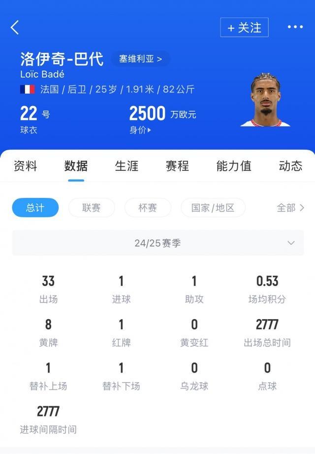 08月21日讯 官方消息,勒沃库森签下塞维利亚中卫巴代,双方签约至2030年。据此前罗马诺报道,转会费为2900万欧元固定,外加400万欧元浮动。勒沃库森官方公告勒沃库森签下了法国中卫巴代。这位法国国脚从西甲球队塞维利亚转会而来。巴代在勒沃库森签订了一份截至2030年6月30日的合同。这位25岁球员将在主教练滕哈赫的球队中身披5号球衣。体育总监西蒙·罗尔费斯表示:“通过签下巴代,我们为勒沃库森赢得了一位年轻但已非常有经验的中后卫。他已经习惯了在西甲联赛中对抗世界级前锋。“巴代在身体对抗中毫不妥协,球商极高,是我们防线的一大强化。凭借这一完整的防守阵容,我们在最高水平上具备竞争力。”巴代在今年6月的欧国联比赛中首次代表法国队出场。他代表塞维利亚在西甲出场79次,在此之前他在法甲里尔队的46场比赛中也有出色表现。巴代表示:“德甲和德国足球对我很有吸引力。勒沃库森在过去几年中在国际上赢得了广泛关注。“我通过电视观看了很多比赛,尤其是国际赛事。体育场和勒沃库森的球迷们都很棒。在这样的环境中为勒沃库森争取冠军将非常有趣。”巴代现年25岁,身高1米91,上赛季为塞维利亚出场33场,现身价2500万欧元。