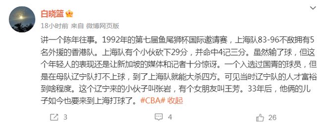 张镇麟目前合同还剩最后一年,明年夏天他合同到期,届时他有资格签顶薪。据媒体人讲述,张镇麟去上海,命运如此神奇,他的父亲当年在辽宁打不上球,去上海后曾在一场比赛大杀四方。