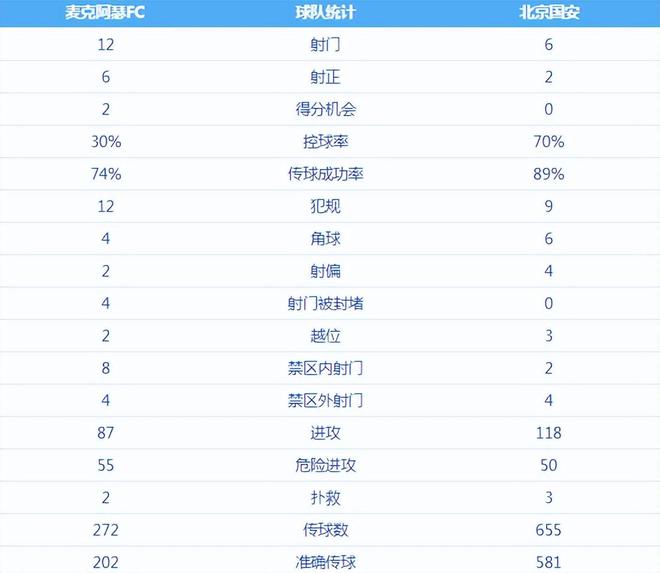 本场比赛北京国安踢出两个极端,好的一方面是场面数据非常漂亮——控球率高达70%,对手仅30%,传球成功率也比对手高出不少,传球次数655是对手的2倍有余。然而漂亮的数据背后却是尴尬的比分:0比3,对手打进3球,国安连像样的威胁射门都没有。