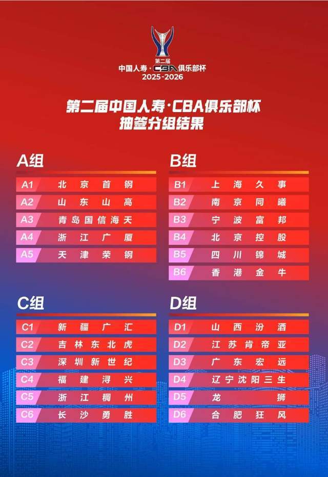 第二届CBA俱乐部杯和去年不同的是,这一次邀请了NBL的球队参加,本来说好的是4支球队,结果石家庄翔蓝因为资金问题,选择不参赛。这就导致,只有23支球队参加了。从抽签结果来看,真是几家欢喜几家愁。A组共有5支球队,分别是北京、山东、青岛、广厦和天津,没有NBL的球队,组内打单循环的赛事,小组前2名出线,晋级8强。要知道,北京和广厦是上赛季总决赛的对手,实力强大,尤其是北京队,休赛期又补充了赵睿,实力不言而喻。山东队处于这样的一个小组,想要出线基本上没戏了。