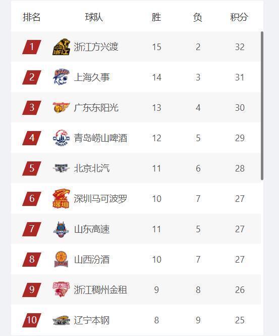 - CBA | CBA最新排名,上海队稳居第2,首钢队跌至第5,辽宁队第10