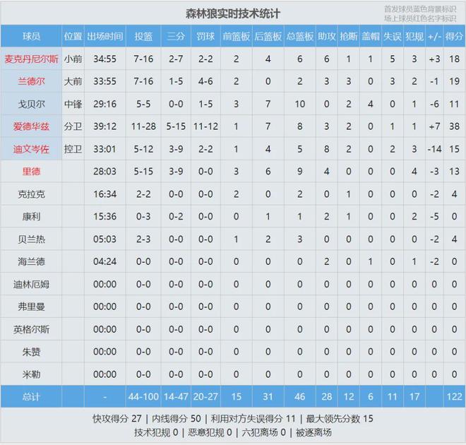 爱德华兹出战39分12秒,28投11中,三分15中5,罚球12中11,空砍38分8板3助2断,正负值+7。今天的主角并不是华子,而是基昂特-乔治:出战39分29秒,28投15中,三分13中6,罚球8中7,拿到43分3助2断,正负值-6。
